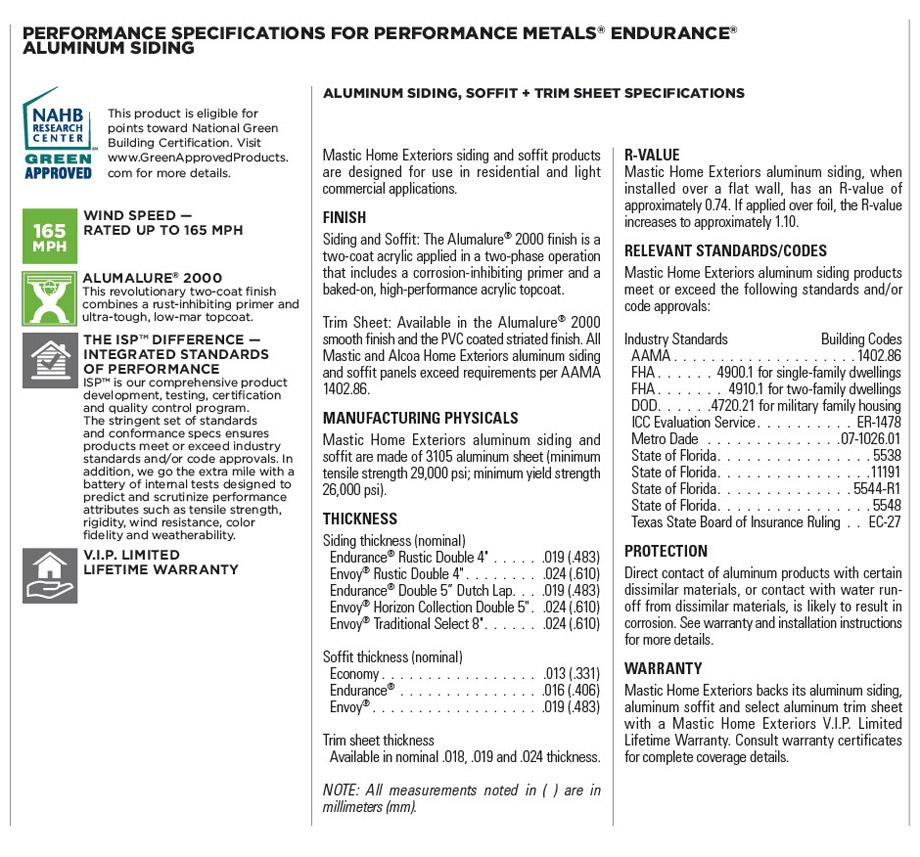 Envoy and Endurance Aluminum Siding
